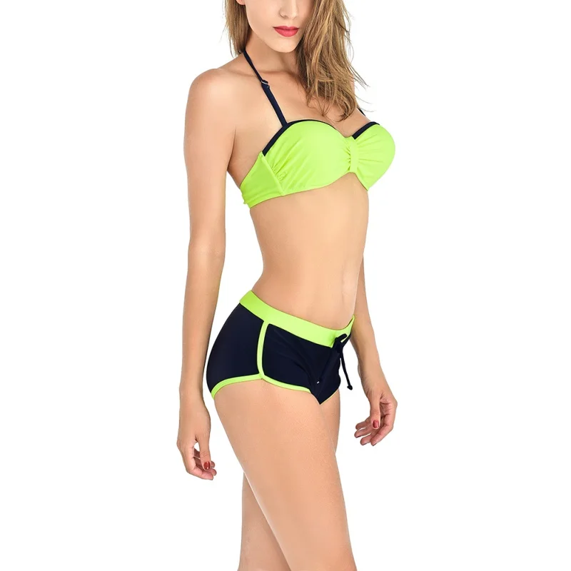 Women Summer Beach Bikini Set Sport Swimsuit Brand Straight Shorts Push Up Swimwear Sport Suits Bathing Suits bikini-shorts-set
