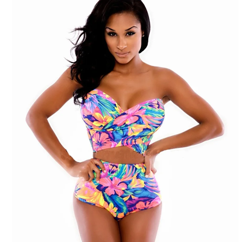 ⛅ Cheap Printed 2 Piece Set Woman Strapless High Waisted Bikinis Beach