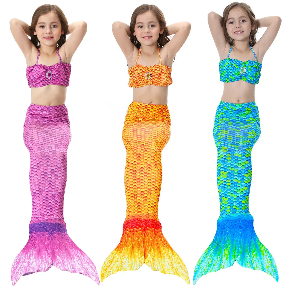 ☉ How To Kids Swimming Mermaid Tail 3pcs Bikini Set Beach Swimsuits